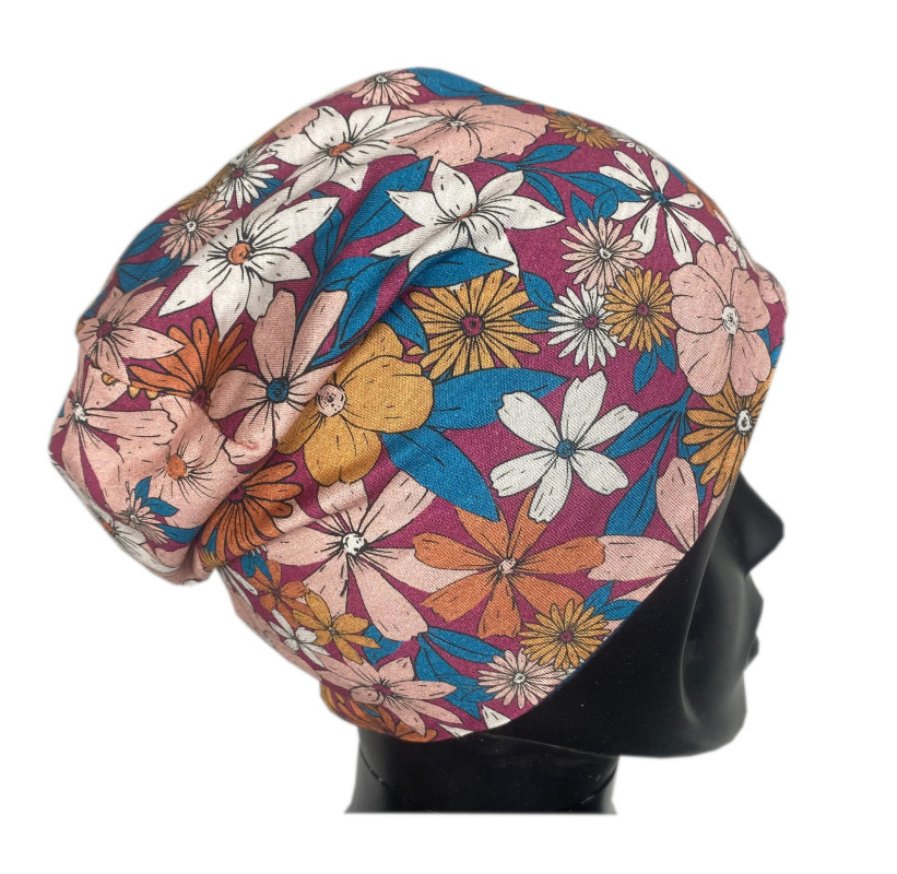 Bonnet tout doux doublé Mérinos régulant jolis fleurs et jolis dessins