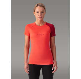Le T-Shirt pour Femme MOLVENO de la marque jurassienne AYAQ est extrêmement léger et respirant. Les manches sont sans coutures sous les aisselles pour éviter les frictions.