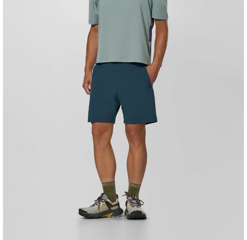 Un short homme pour la montagne, solide et déperlant et particulièrement souple pour accélérer la foulée en descente (ou en montée)
