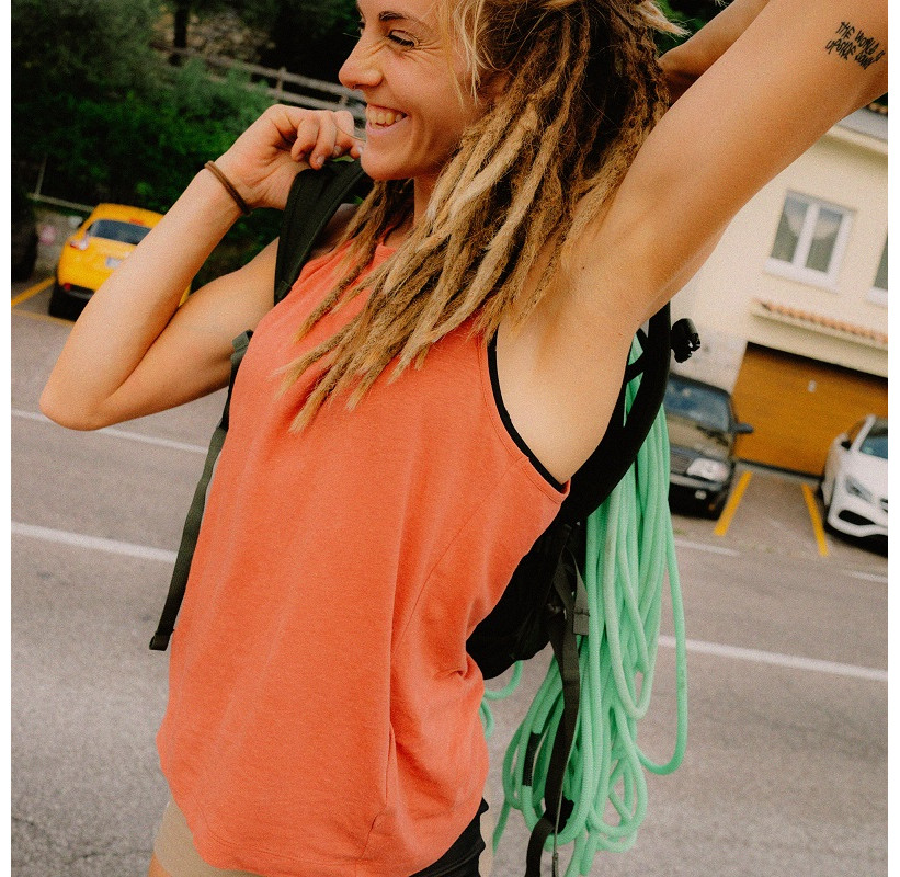 Solidité du chanvre associé à la douceur du coton pour ce débardeur féminin qui vous suivra en escalade, randonnée, trek ou yoga.